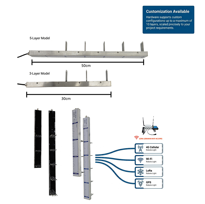 The sensor is designed to integrate into a comprehensive Wireless IoT Data Loggers ecosystem. Using the RS485 Modbus-RTU protocol, each layer’s data can be transmitted to a centralized gateway. For system integrators, each layer is configured as a separate addressable sensor, allowing for granular data acquisition.
