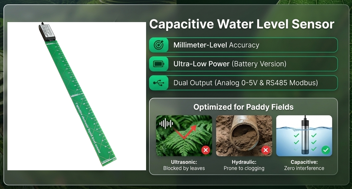 - Accuracy to 1mm: Unlike mechanical floats, capacitance sensing provides hyper-precise data for automated flood irrigation.