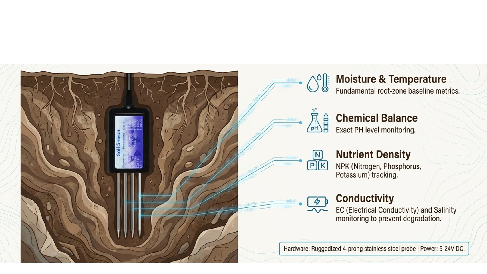 Effective crop management begins with a deep understanding of the rhizosphere. The 8-in-1 soil sensor is a high-precision instrument designed to provide a complete profile of soil health. From a technical perspective, these sensors utilize industrial-standard RS485 (Modbus RTU) or SDI-12 interfaces to ensure reliable data parity before wireless transmission.