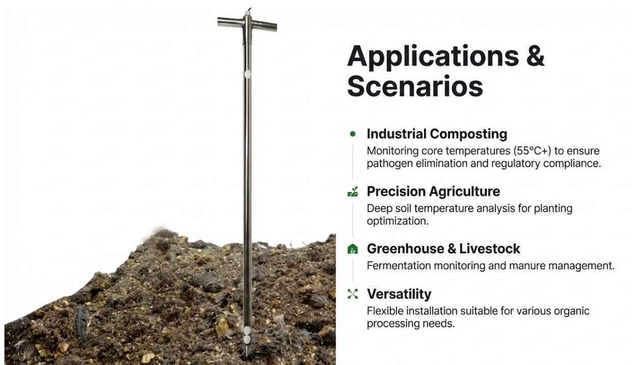The HD-CFT-01 represents a significant upgrade for facilities moving toward data-driven composting. By combining high-accuracy digital sensing with a ruggedized stainless steel form factor and easy-to-integrate RS485 communication, it provides the reliability needed to maximize decomposition efficiency and ensure total pathogen destruction.