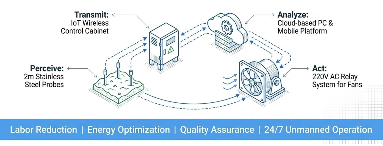 - Thermal Safety Risks: Without real-time monitoring, localized heat spikes can exceed 70°C, killing beneficial microbes or, in extreme cases, triggering spontaneous combustion in high-density piles.