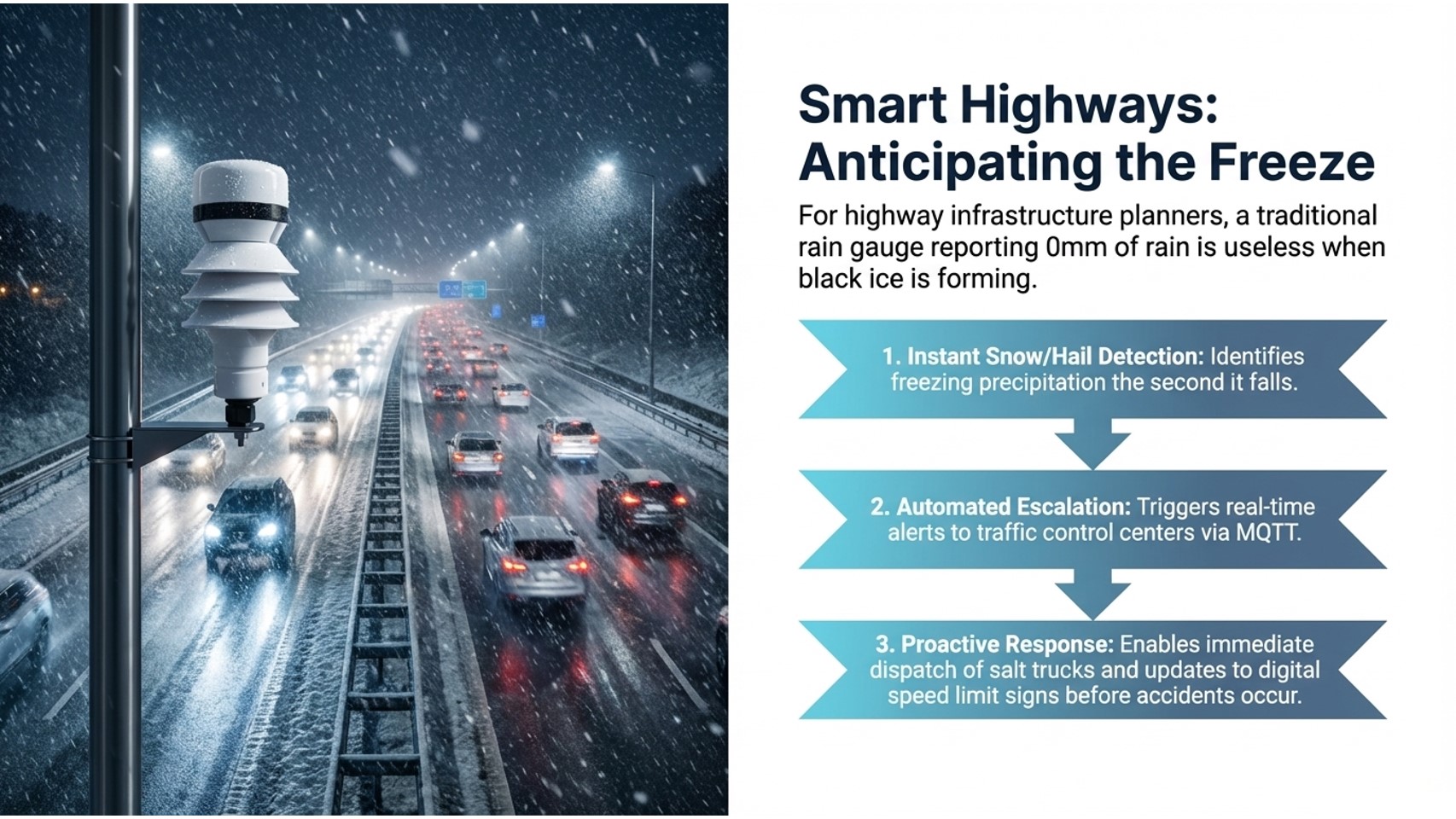 - Highway Safety: In transit environments, detecting snow and hail in real-time is the difference between a clear road and a multi-car pileup. The HD-RDPS-01 provides the immediate data needed for automated road maintenance alerts, allowing de-icing crews to be deployed the moment snow begins—not twenty minutes after the bucket finally tips.